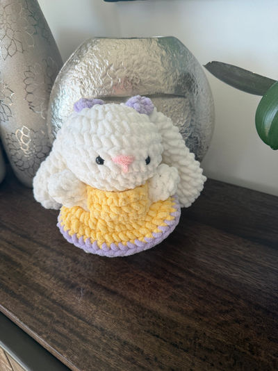 Discover Bonny Bunny from HootsDesign, capturing whimsy and cuteness. In a yellow dress with purple edges and flowers, this handcrafted piece is unique. Each detail reflects our local business's care and creativity. Bonny Bunny embodies HootsDesign's dedication to artisanal creations. Add this whimsical companion to your home or gift it for a lasting impression.