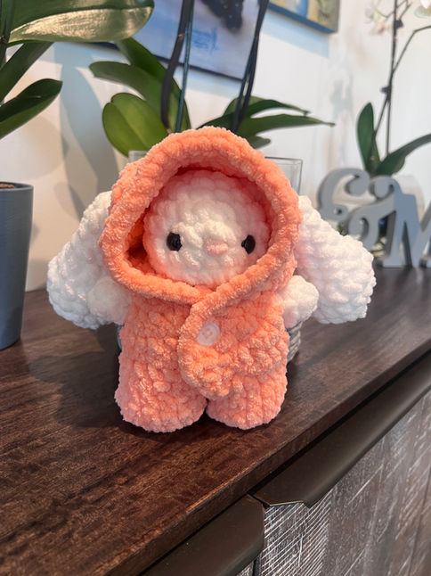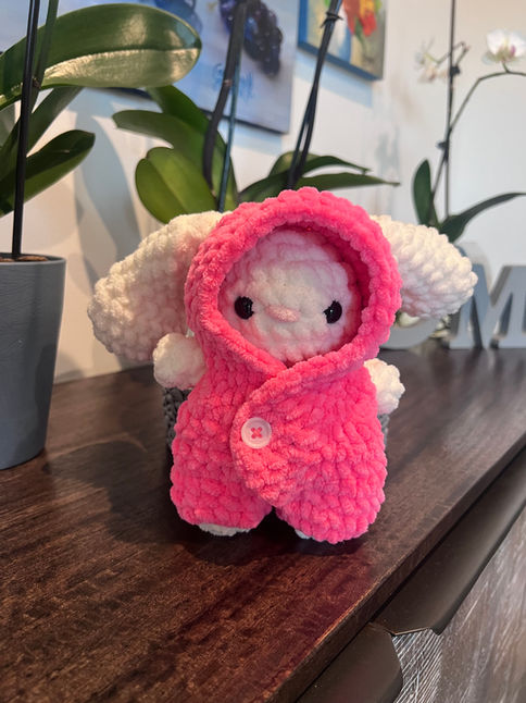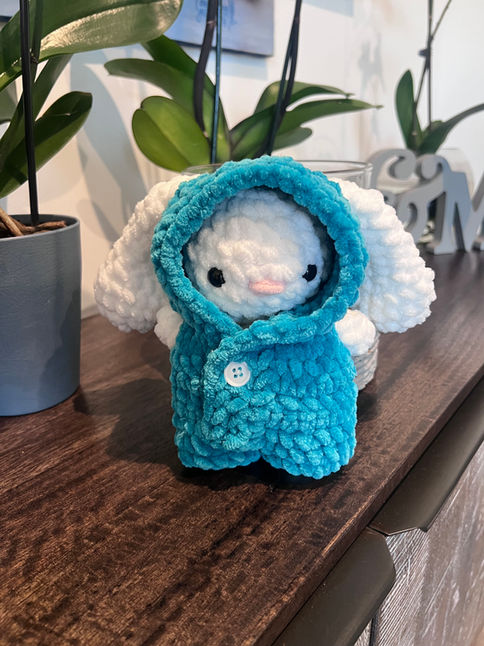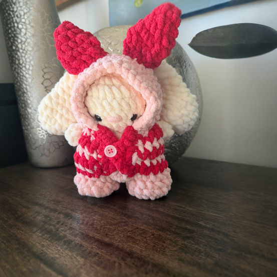 Lolita the Bunny, a handmade crochet mini, is whimsical and charming in a cute, compact design. Crafted with care, she reflects HootsDesign's artisanal quality. Perfect for fans of unique, handcrafted treasures, she comes in various handmade crochet mini whimsical PJs. Welcome this delightful companion into your space and experience artisanal magic.